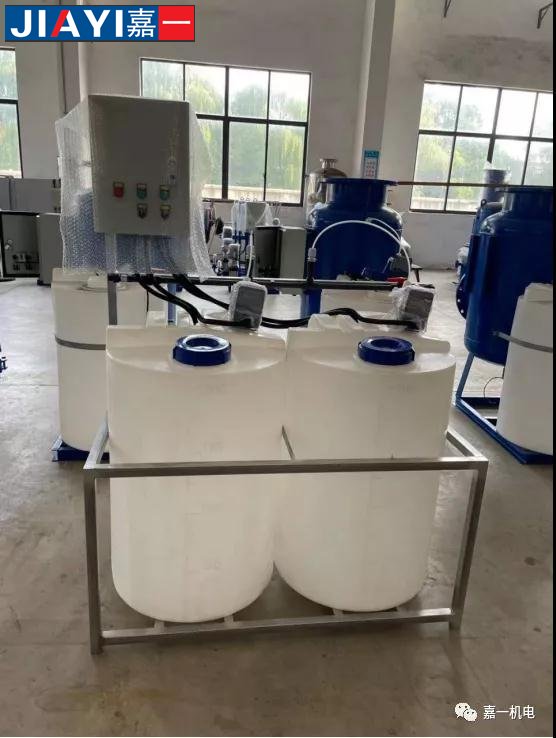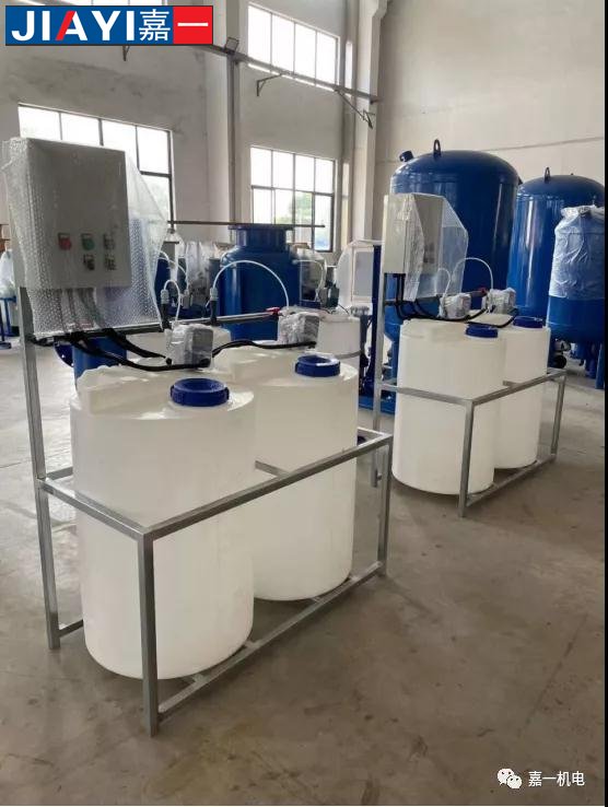 全自動加藥裝置采用時間程序控制,此控制方式無需儀表的支持,首先根據系統的運轉需要設定自動加藥的周期、加藥量、加藥時間和加藥頻率。在以后的系統運轉過程中,到加藥周期,計量泵自動打開加藥,加到規定的時間計量泵關閉;到排污周期,計量泵停止加藥,排到規定的時間后,計量泵繼續開啟,補充排污損失掉的藥劑,把系統的含藥量維持在正常的水平、加到規定的時間計量泵關閉。