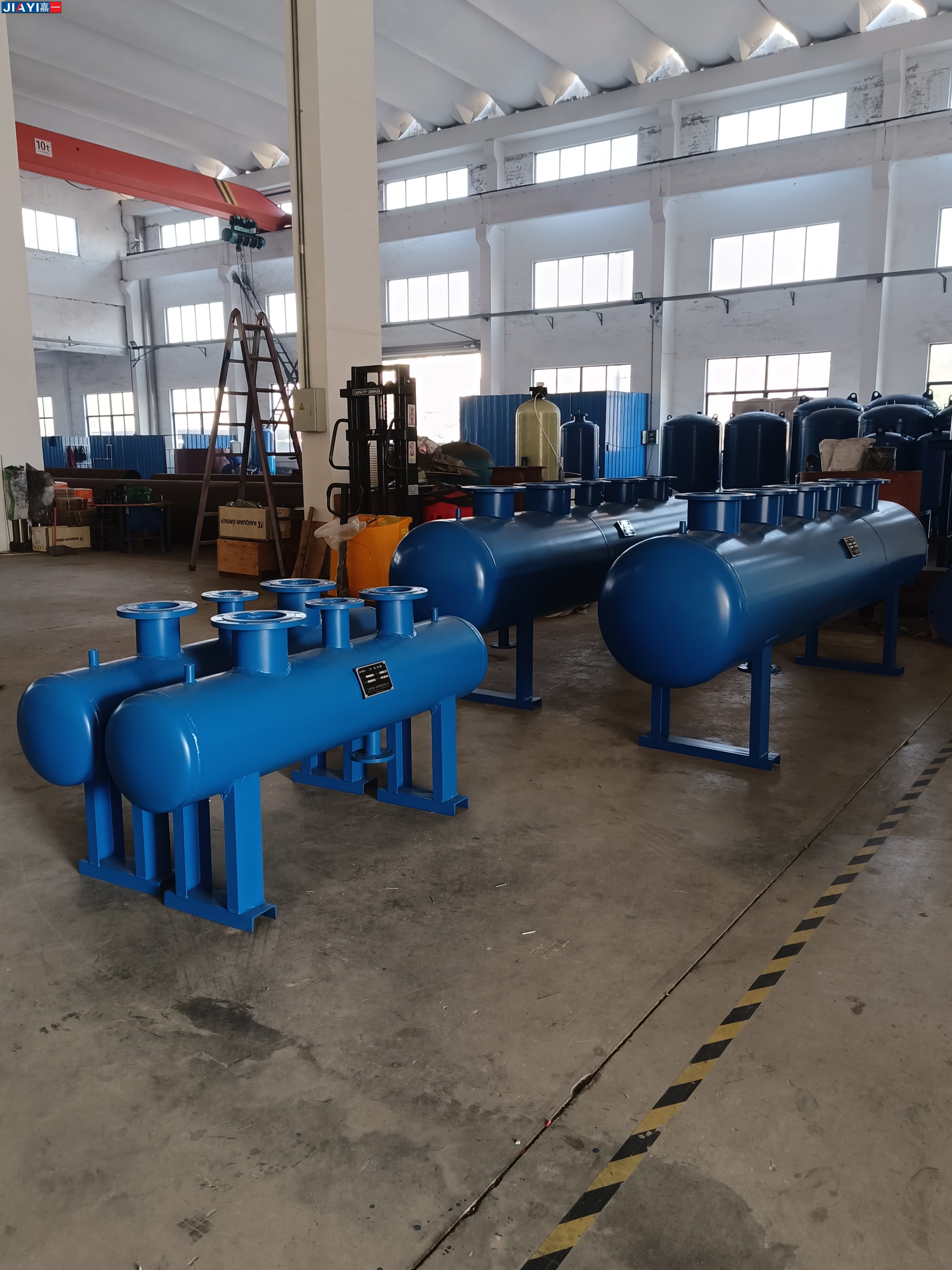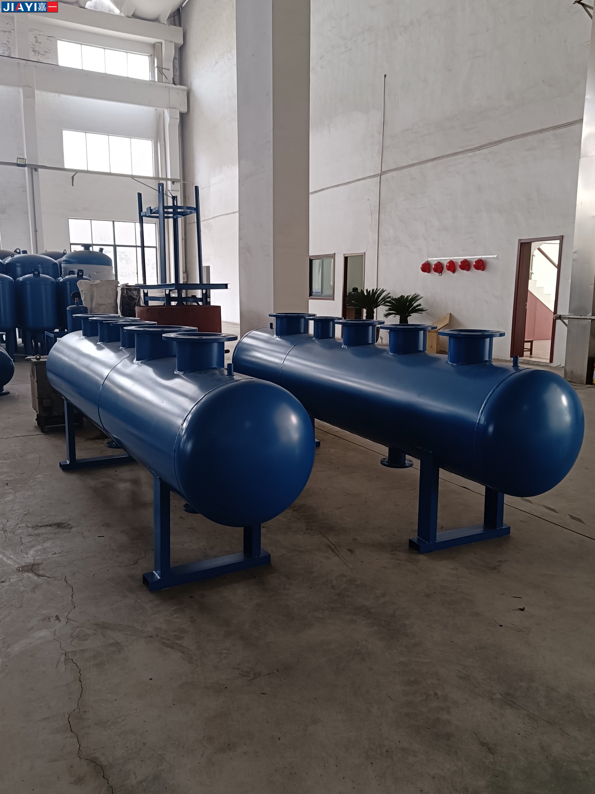 則是將多路進水通過一個容器一路輸出的設備。其管理若干的支路管道,分別包括回水支路和供水支路,用碳鋼或不銹鋼板制作,屬于壓力容器類專業制造,其需要安裝壓力表溫度計。它一方面將主干管的水按需要進行流量分配,保證各區域分支環路的流量滿足負荷需要,同時還要將各分支回路的水流匯集,并且輸入回水主干管中,實現循環運行。其回水再利用,可達到更節能的效果,可以同時滿足供熱與制冷的需要。