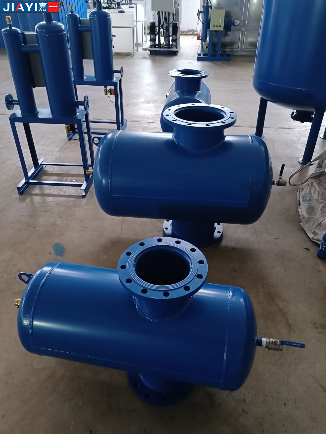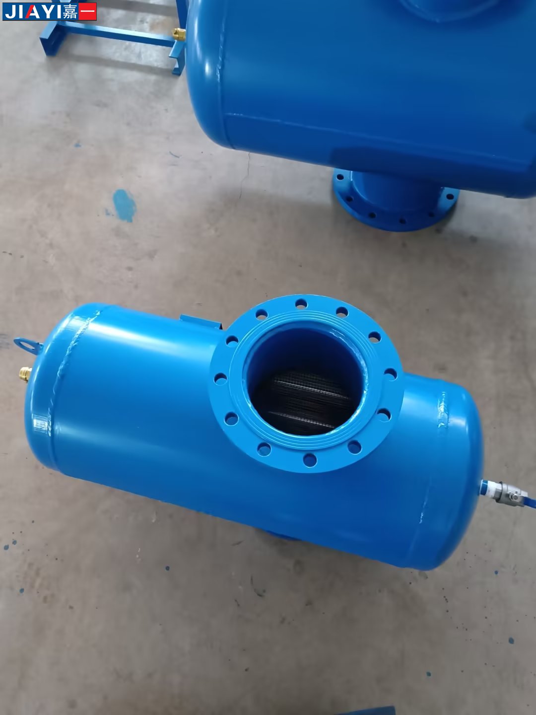 利用氣水分離、沉降、過(guò)濾等機(jī)理。當(dāng)冷卻水、熱水、冷凍水系統(tǒng)中水進(jìn)入螺旋脫氣過(guò)濾器時(shí),體積擴(kuò)大,流速急劇降低,水中氣泡分離上升至聚氣區(qū),小氣泡吸附在分離板上,當(dāng)形成大氣泡上升至聚氣區(qū)后通過(guò)自動(dòng)排氣閥排除。